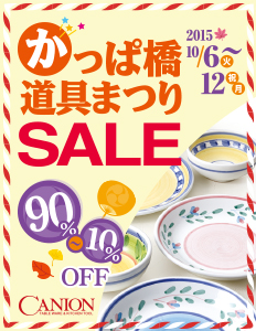 合羽橋キャニオンでは、年に一度の「かっぱ橋道具まつりセール 2015」を10月6日(火)~10月12日(祝・月)まで開催いたします。