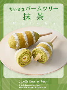 ねんりん家が独自の製法で1本づつふっくらと焼きあげた、おひとり用バームクーヘン[ちいさなバームツリー]に、新たに「抹茶」が新登場です。