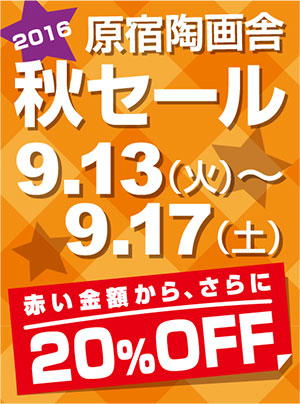 原宿陶画舎では、9月13日(火)~17日(土)まで、秋のセールを開催します。