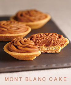 マロングラッセを散りばめた生地に、モンブランクリームを盛りあげて焼きあげました。