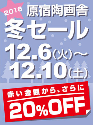 原宿陶画舎では、12月6日(火)~10日(土)まで、冬のセールを開催します。