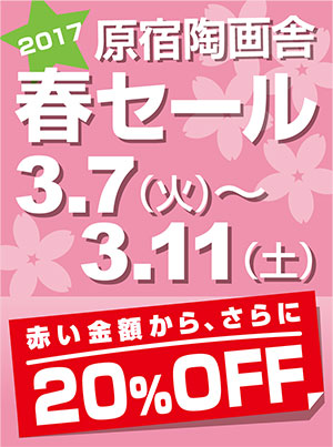 原宿陶画舎では、3月7日(火)~11日(土)まで、春のセールを開催します。