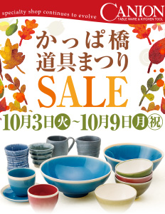 「かっぱ橋道具まつりSALE」を10月3日(火)~10月9日(月・祝)まで開催いたします。