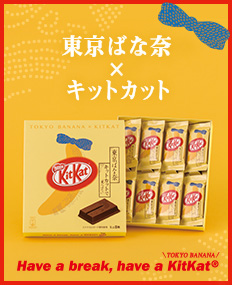 「東京ばな奈」らしい やさしいバナナの味わいを、「キットカット」のチョコレートで包みました。