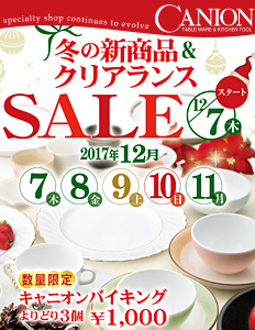 浅草からもほど近い合羽橋キャニオンの「冬の新商品&クリアランスSALE」に、ぜひお越しください。