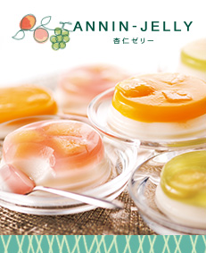 果肉をごろごろ浮かべた3種のフルーツゼリー。 口の中でなめらかにとけてゆく杏仁豆腐を重ね盛りして、 新しい喉ごしの「杏仁ゼリー」にお仕立てしました。