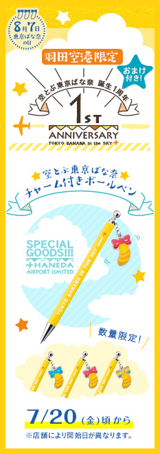 「空とぶ東京ばな奈」は大空をとびはじめておかげさまで1周年。日頃の感謝をこめてぶーんと「空とぶ東京ばな奈チャーム付きボールペン」をプレゼントいたします。